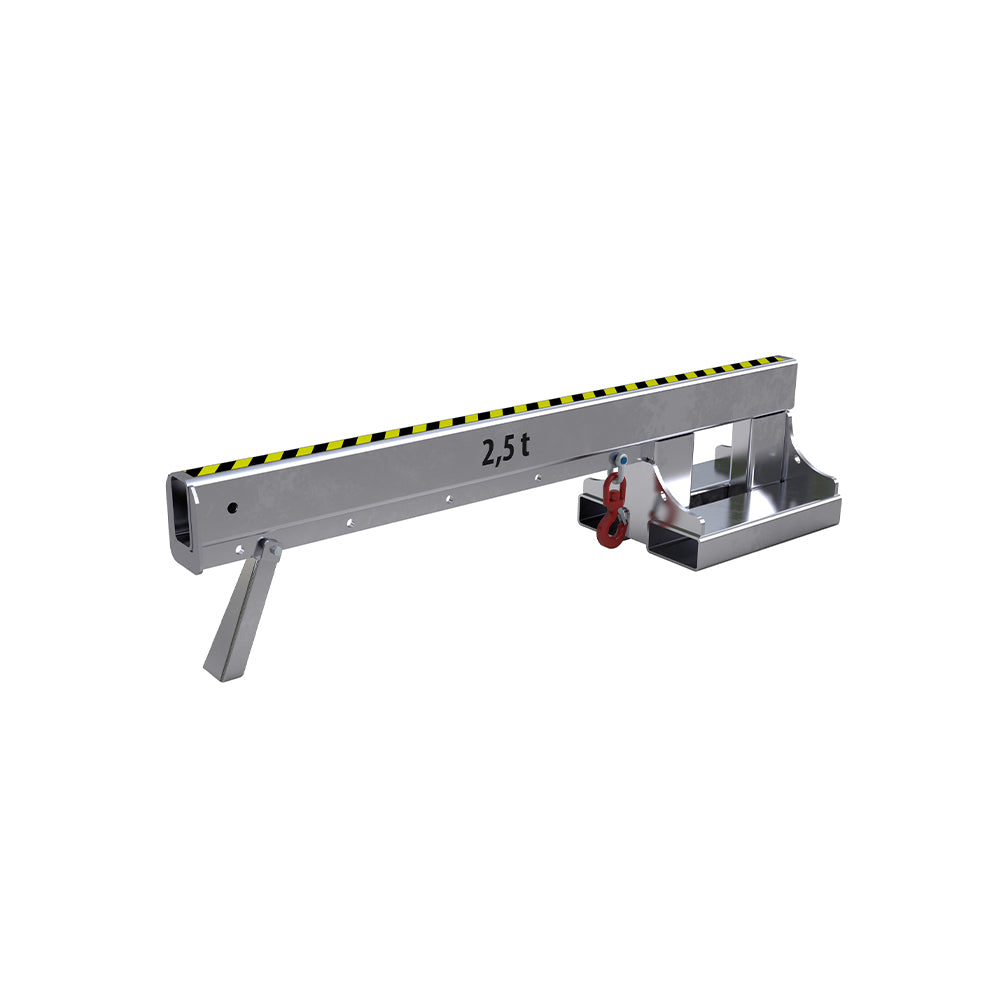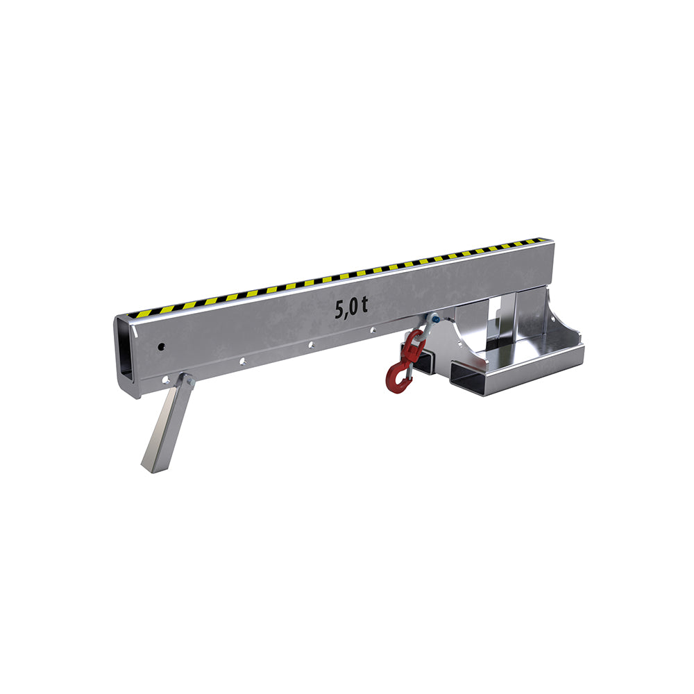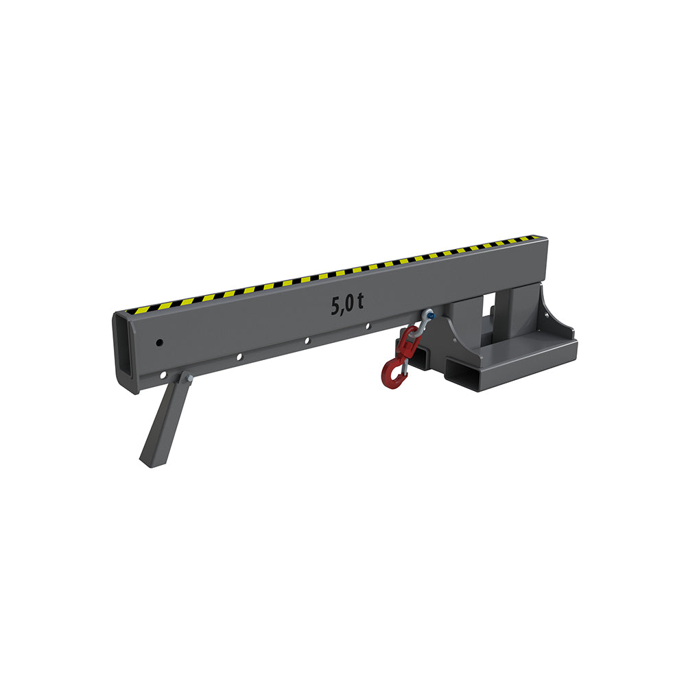 Kranarm KT-K för gaffeltruck är en kranarm för gaffeltruck i fast längd, fixerad i horisontellt läge. Den levereras med en flyttbar lyftkrok som kan fästas i fem olika positioner för att anpassa lyftpunkten efter lasten.
