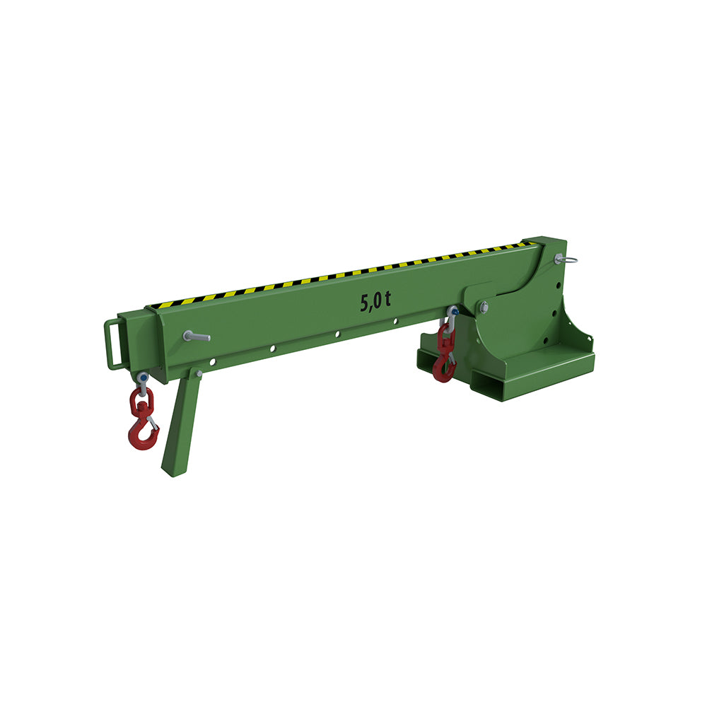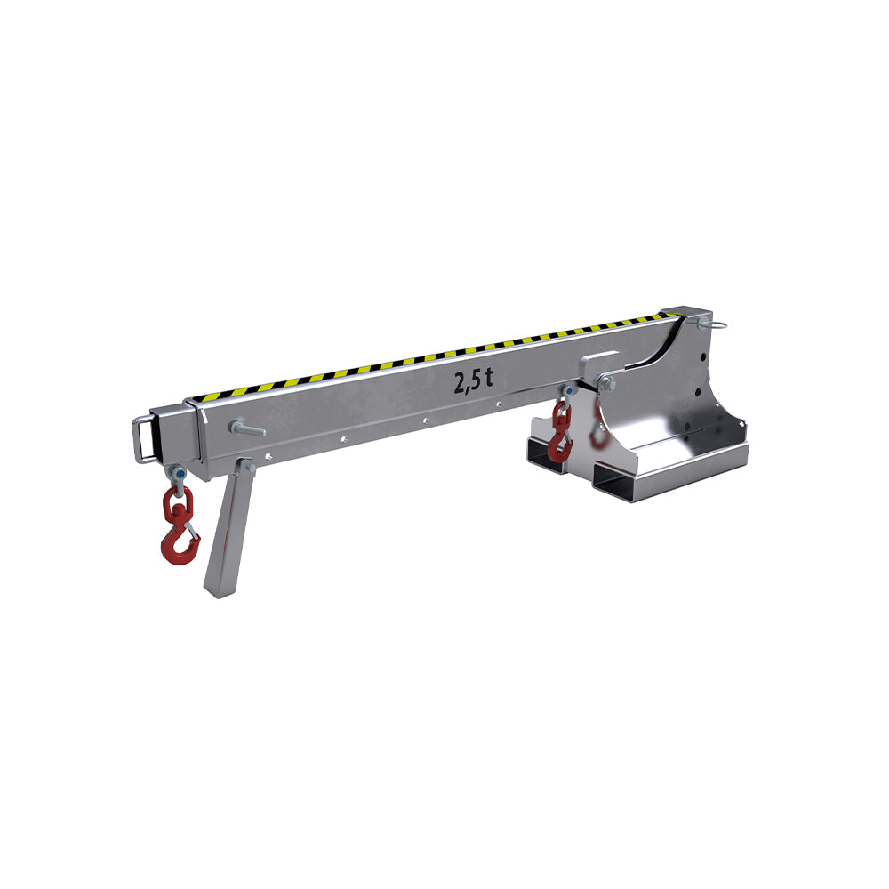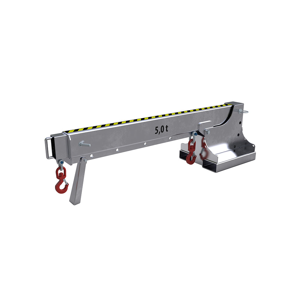 Kranarm KTH är en teleskopisk och vinklingsbar kranarm som gör gaffeltrucken till ett mångsidigt lyftredskap. Armens längd kan justeras i 8 lägen och fixeras i tre olika vinklar, vilket gör den idealisk för lyft över hinder eller i trånga utrymmen – 0º, 15º, 30º och 45º. Den är tillverkad i kraftig stålprofil med förstärkta svetsar för maximal hållfasthet och har låsbara gaffelhylsor för säker fastsättning på trucken.