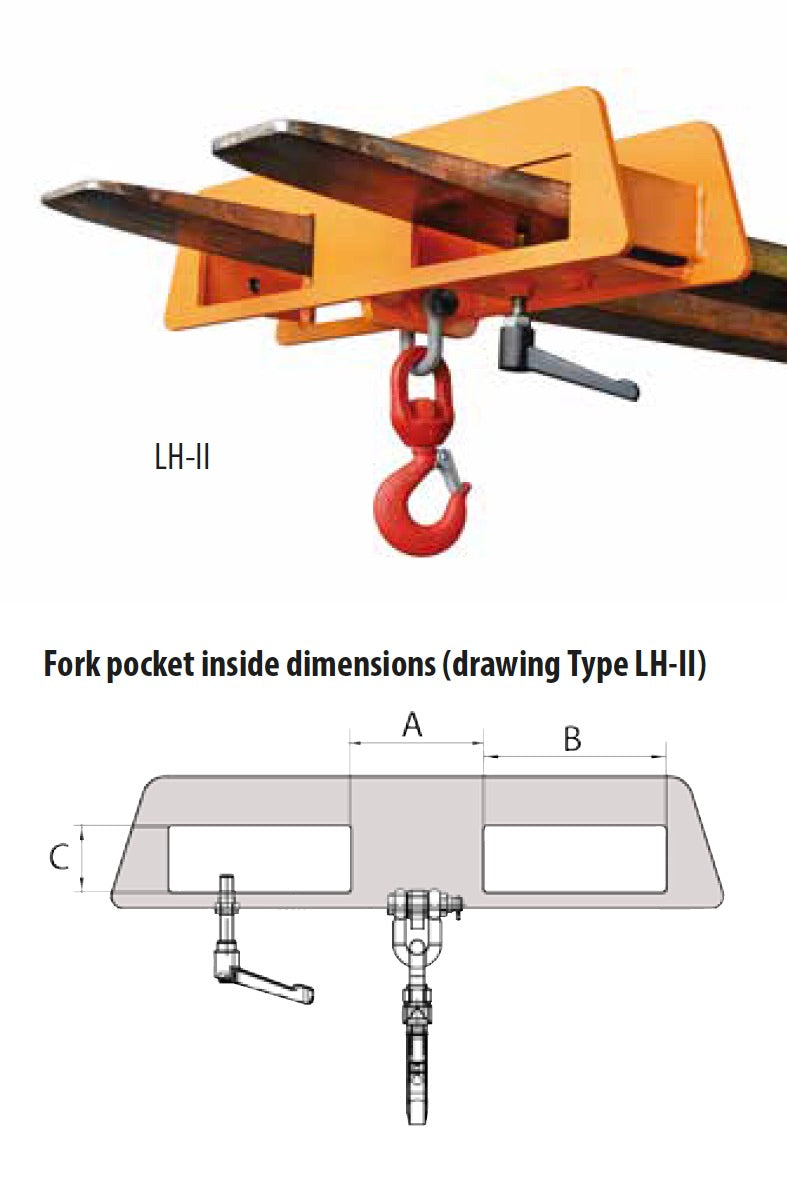 Lyftok LH-II är ett kraftigt lyftredskap för gaffeltruckar, utformat för lyft med båda gafflarna. Konstruktionen fördelar lasten jämnt över båda gafflarna och ger en stabil krokpunkt för lyft av tungt eller otympligt gods.