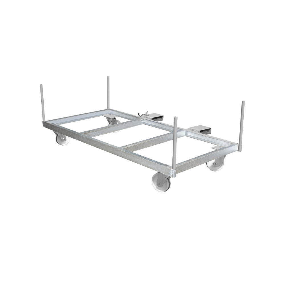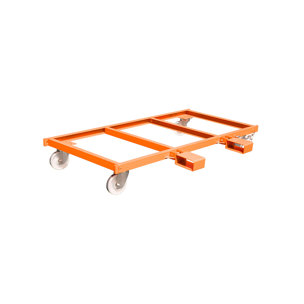 Vagnen används tillsammans med gaffeltruck och monteras på sidan för att ge stabilitet och balans vid förflyttning av långa laster. Gaffelhylsorna är fällbara och har innermåtten 200x80 mm. Den kraftiga stålkonstruktionen är utrustad med styrhjul och stödben för hög stabilitet även vid tung last. Tack vare den öppna designen får du en tydlig sikt och enkel lastning.