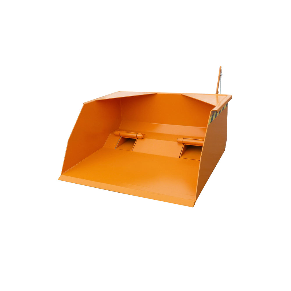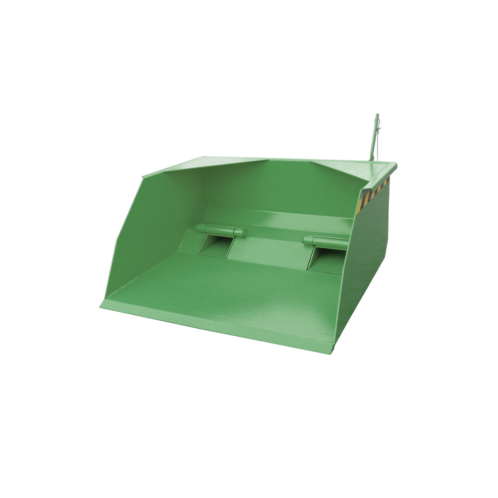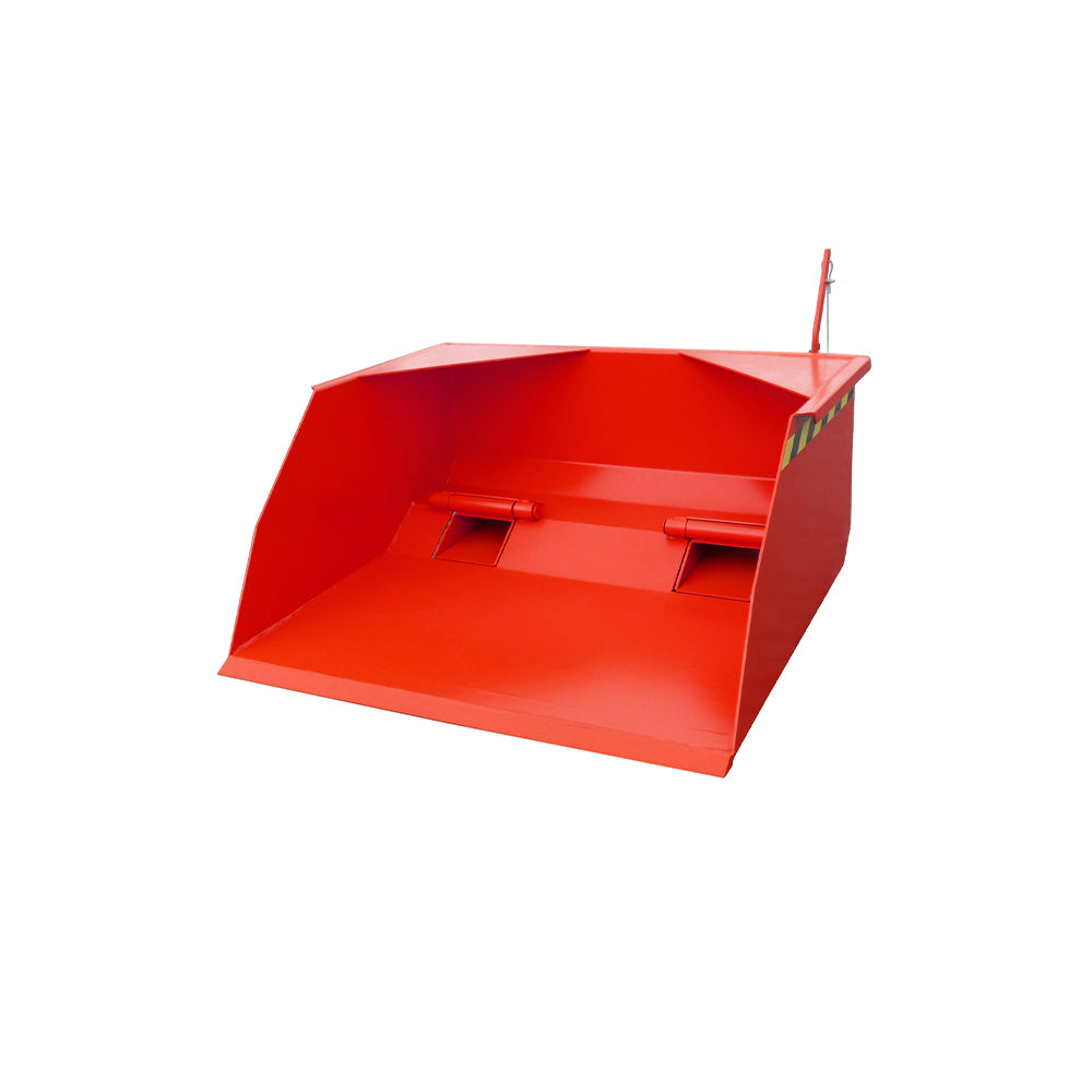 Skopan plockas enkelt upp med trucken och säkras med en kedja för att förhindra glidning. Tömning sker på valfri höjd via en dragvajer som manövreras direkt från förarsätet – därefter återgår skopan automatiskt till lastningsläget. Tömningsfunktionen kan säkras för att inte riskera att skopan tömmer oavsiktligt.